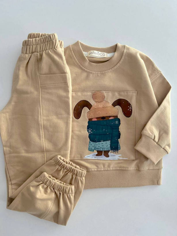 ست دورس جاگر پسرانه دخترانه طرح حیوانت خرس کرم جنس دو نخ لاکرا