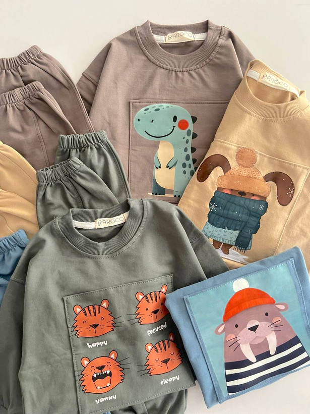 ست دورس جاگر پسرانه دخترانه طرح دایناسور جنس دو نخ‌لاکرا