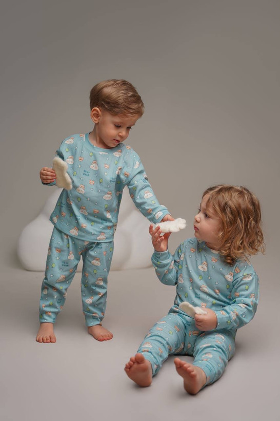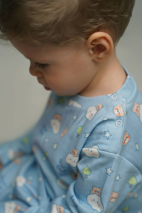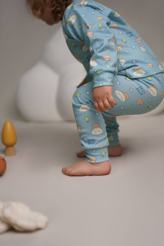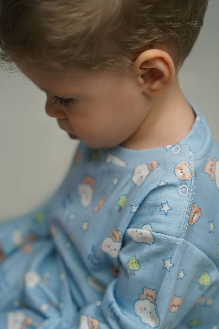 ست بلوز شلوار بچگانه یونیسکس طرح تدی بلو جنس نخ پنبه